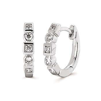 1/5 Ctw. Square And Round Bezel Set Hoop Earrings In 14K Gold